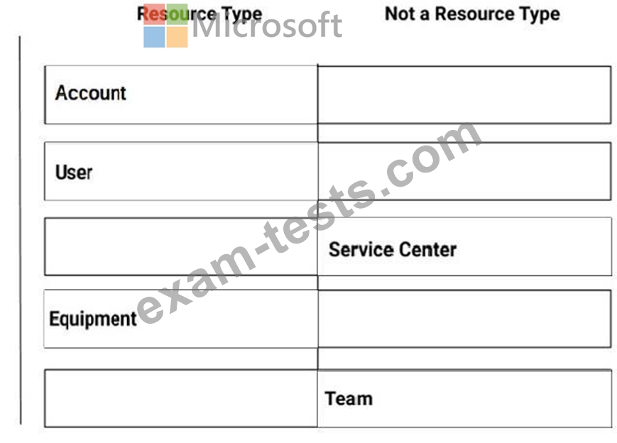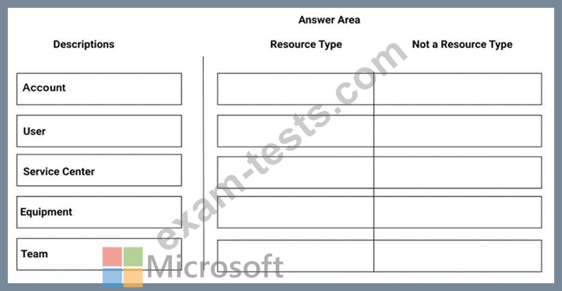 Your company has a requirement to use the out-of-the-box Resource types to categorize Active Bookable Resource types. The company wants to ensure easy Dynamics 365 upgrades as needed.