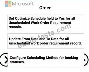 You are setting your environment to use Resource Scheduling Optimization (RSO). You have enabled Optimize Schedule for all Bookable Resources.
