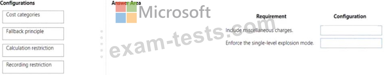 What should you configure? To answer, drag the appropriate configurations to the correct requirements. Each configuration may be used once, more than once, or not at all. You may need to drag the split bar between panes or scroll to view content.