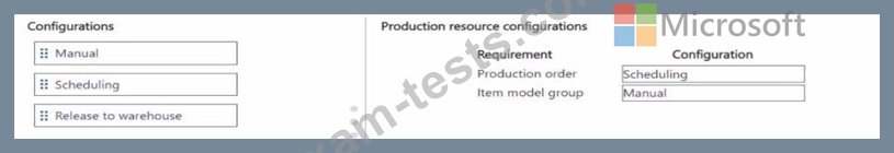 How should you configure the prototype production order? To answer, move the appropriate configurations to the correct requirements. You may use each configuration once, more than once, or not at all. You may need to move the split bar between panes or scroll to view content.