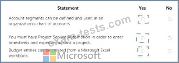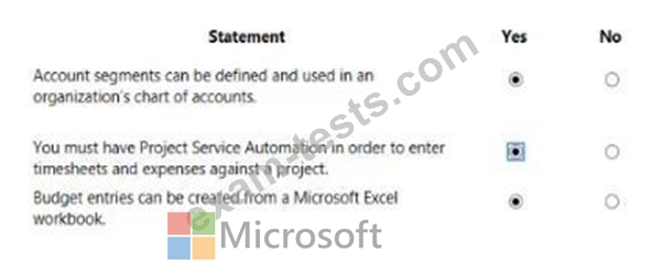For each of the following statements, select Yes if the statement is true. Otherwise select No.