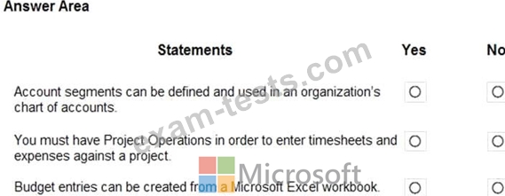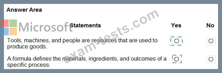 Instructions: For each of the following statements, select Yes if the statement is true. Otherwise, select No.