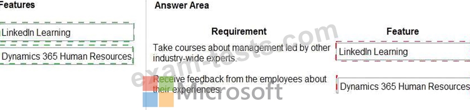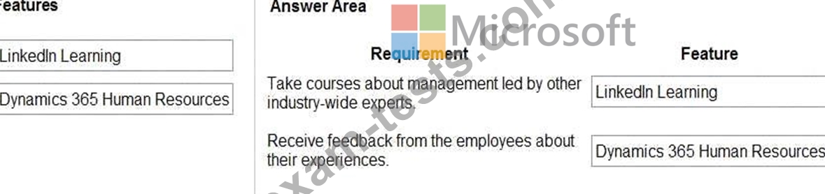 What should you implement? To answer, drag the appropriate features to the correct requirements. Each feature may be used once, more than once, or not at all. You may need to drag the split bar between panes or scroll to view content.
