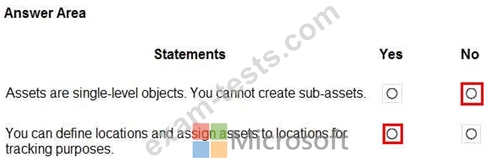 A company uses Dynamics 365 Supply Chain Management. The company plans to implement Asset Management.
