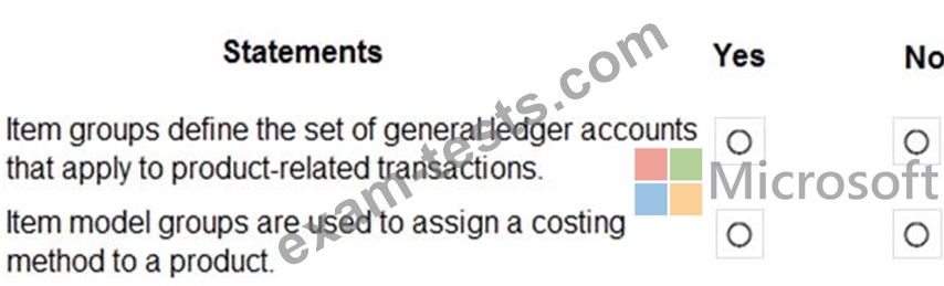 Instructions: For each of the following statements, select Yes if the statement is true. Otherwise, select No.