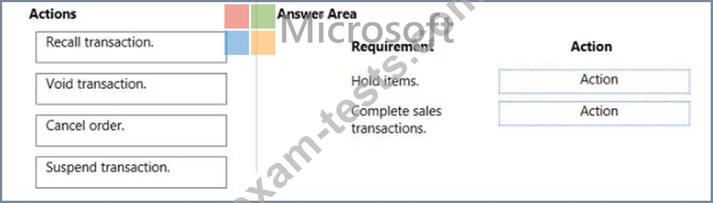 What should you recommend? To answer, drag the appropriate actions to the correct requirements. Each action may be used once, more than once, or not at all. You may need to drag the split bar between panes or scroll to view content.