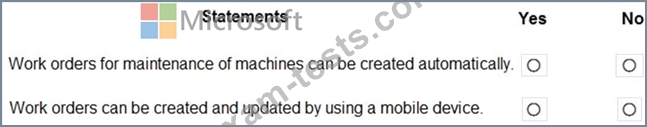 A company implements Dynamics 365 Supply Chain Management. The company plans to use maintenance work orders.