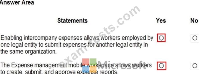 Instructions: For each of the following statements, select Yes if the statement is true. Otherwise, select No.