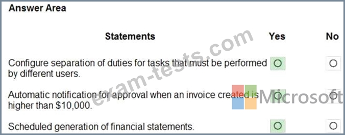 Instructions: For each of the following statements, select Yes if the statement is true. Otherwise, select No.