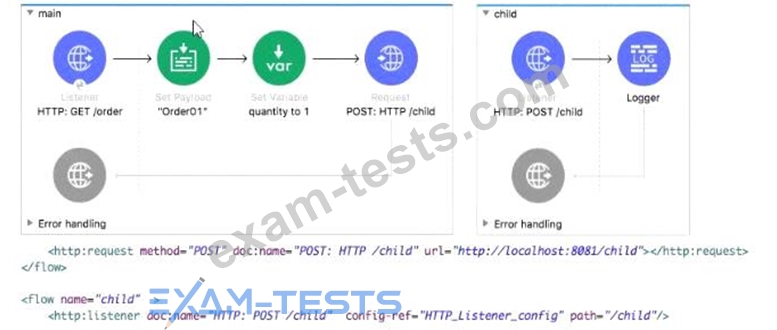 values are accessible in the child flow after a web client submits a request to http://localhost:8081/order? col or