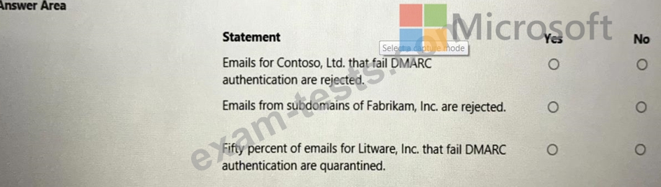 For each of the following statements, select Yes if the statement is true. Otherwise, select No. NOTE Each correct selection is worth one point.