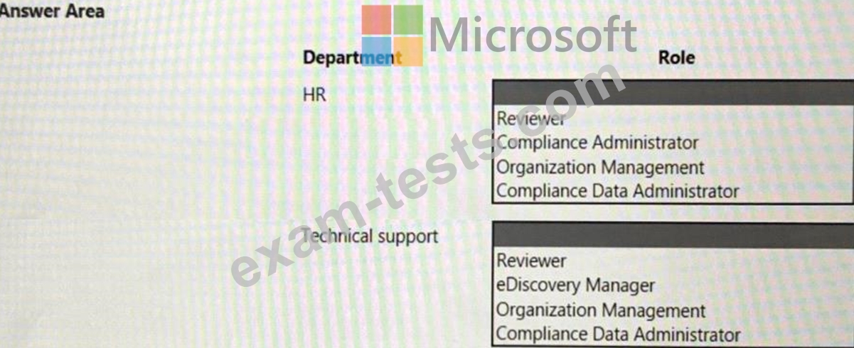 Which roles should Admin1 assign to HR and technical support department members? To answer, select the appropriate options in the answer area.