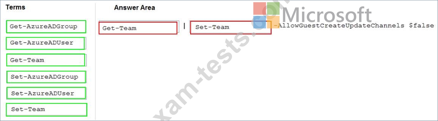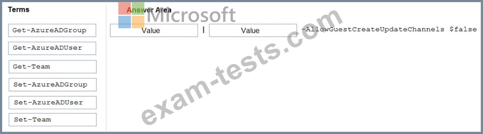How should you complete the PowerShell script? To answer, drag the appropriate options to the correct targets. Each option may be used once, more than once, or not at all. You may need to drag the split bar between panes or scroll to view content.