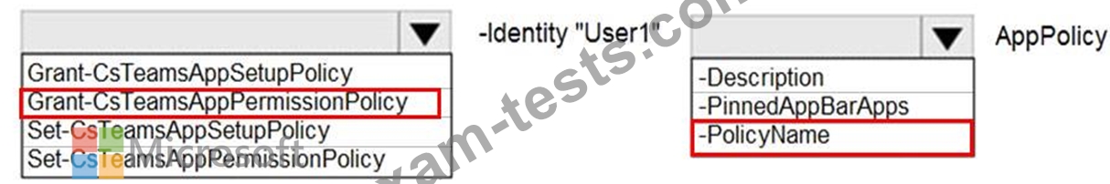 How should you complete the PowerShell command? To answer, select the appropriate options in the answer area.