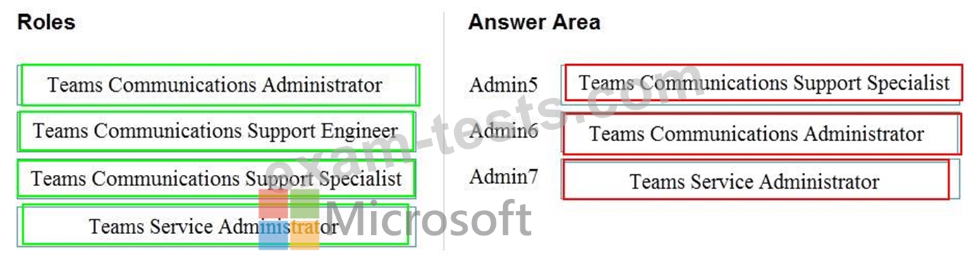 Which role should you assign to each administrator? To answer, drag the appropriate roles to the correct users. Each role may be used once, more than once, or not at all. You may need to drag the split bar between panes or scroll to view content.