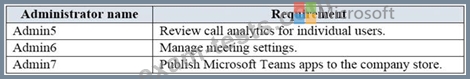 You need to assign a role to each administrator to ensure that the administrators can meet the security requirements by using the Microsoft Teams admin center. The solution must use the principle of least privilege.