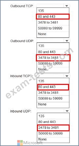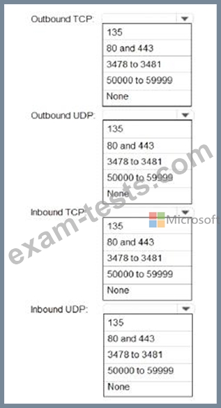 Which inbound and outbound ports should you recommend? To answer, select the appropriate options in the answer area.
