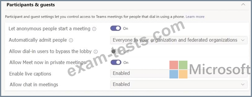 During the pilot project, you review the global policies in the Microsoft Teams admin center.