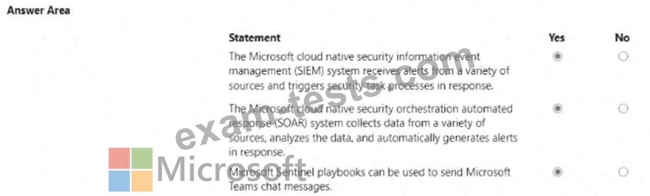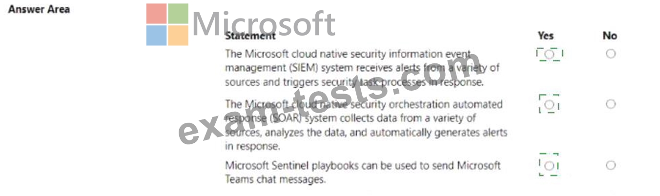 For each of the following statements, select Yes if the statement is true. Otherwise, select No.