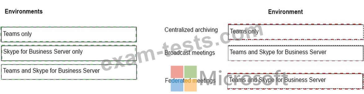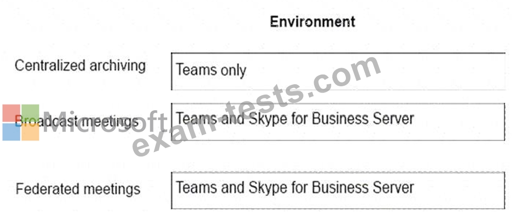 A company plans to deploy collaboration tools for employees. The company does not plan to deploy a hybrid environment. You need to identify the features that are available in Teams and Skype for Business Server.
