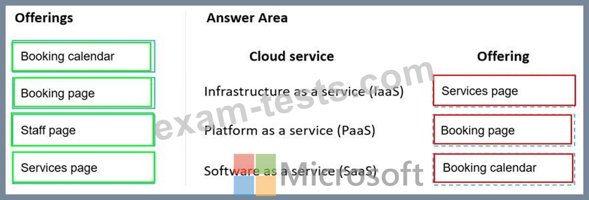Instructions: To answer, drag the appropriate offering from the column on the left to the cloud service on the right. Each offering might be used once, more than once, or not at all.