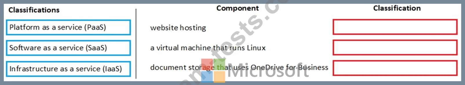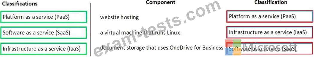 Match each component to its classification. To answer, drag the appropriate components from the column on the left to its classifications on the right. Each component may be used once, more than once, or not at all.