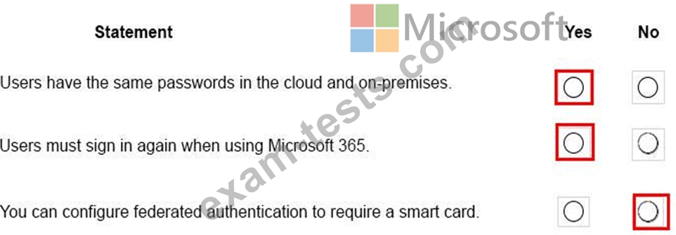 You are a Microsoft 365 administrator for a company. The company implements federated authentication.