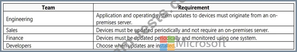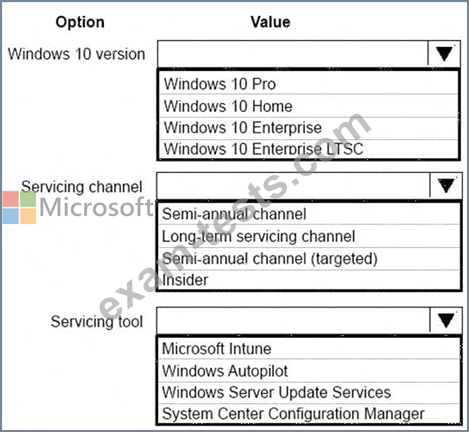 You need to recommend the appropriate servicing models to update employee devices.