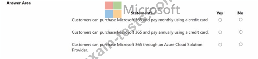 For each of the following statements, select Yes if the statement is true. Otherwise, select No. NOTE: Each correct selection is worth one point.
