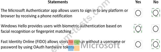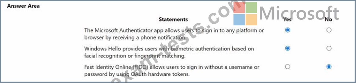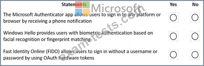 For each of the following statements, select Yes if the statement is true. Otherwise, select No.