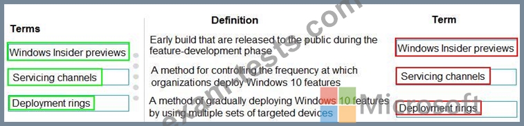 Match each term to its definition. To answer, drag the appropriate terms from the column on the left to its definitions on the right. Each term may be used once, more than once, or not at all.