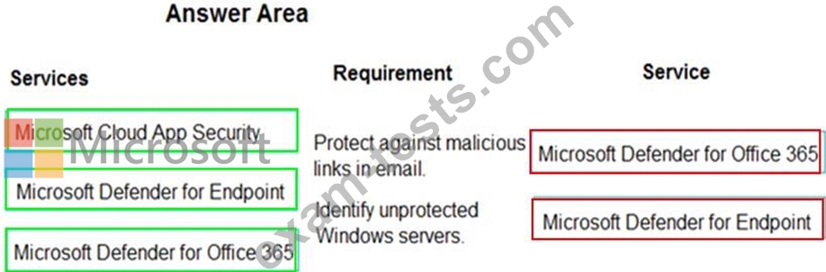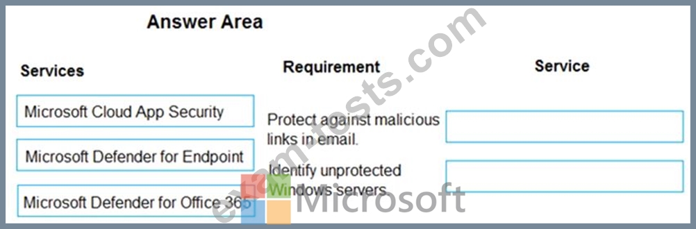 Which services should you use? To answer, drag the appropriate services to the correct requirements. Each service may be used once, more than once, or not at all. You may need to drag the split bar between panes or scroll to view content.