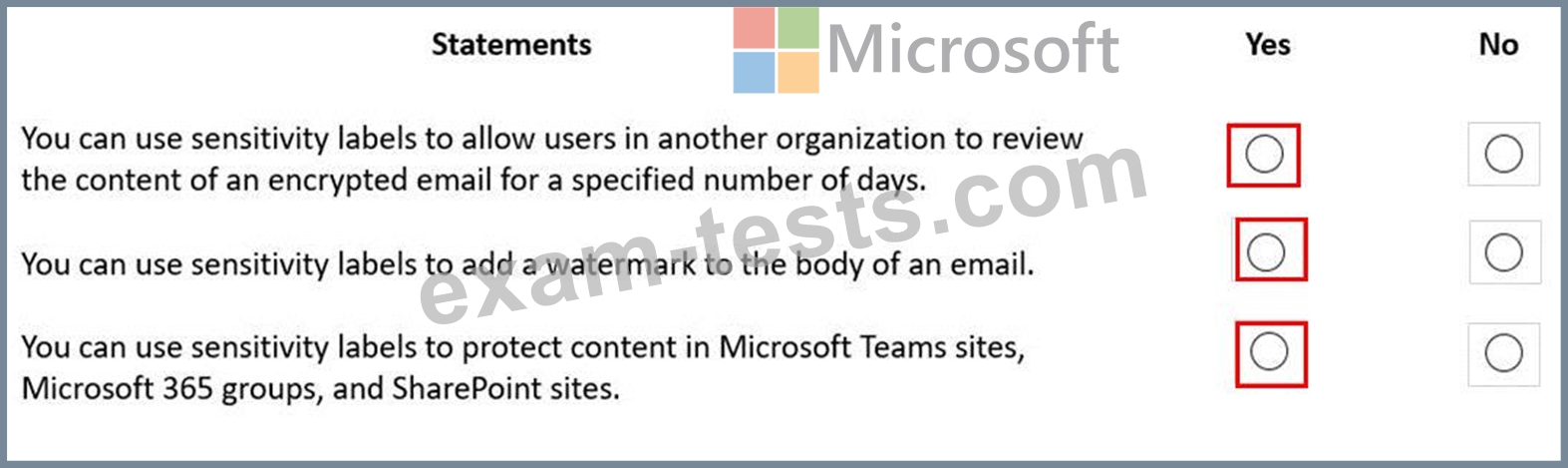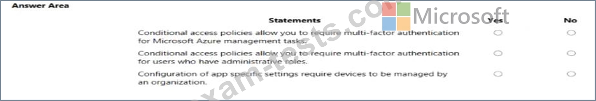 Instructions: For each of the following statements, select Yes if the statement is true. Otherwise, select No.