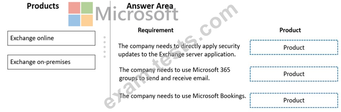 Which product should you select? To answer, drag the appropriate products to the correct requirements. Each product may be used once, more than once, or not at all. You may need to drag the split bar between panes or scroll to view content.