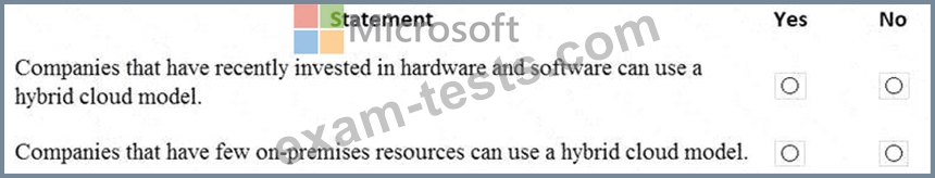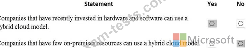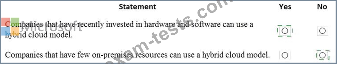 For each of the following statements, select Yes if the statement is true. Otherwise, select No.