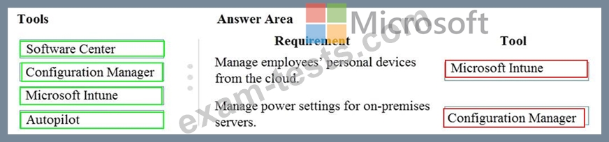 You need to identify the endpoint management tool associated with each action.
