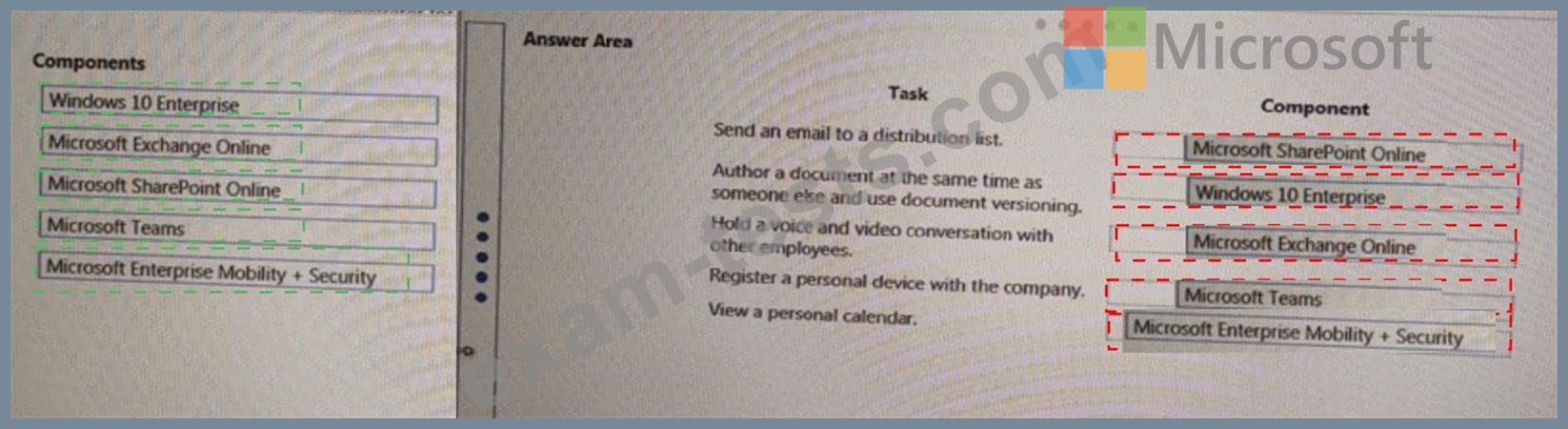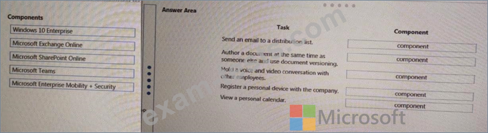 Match each component to its task. To answer, drag the appropriate components from the column on the left to the tasks on the right. Each component may be used once, more than once, or not at all NOTE: Each correct match is worth one point.