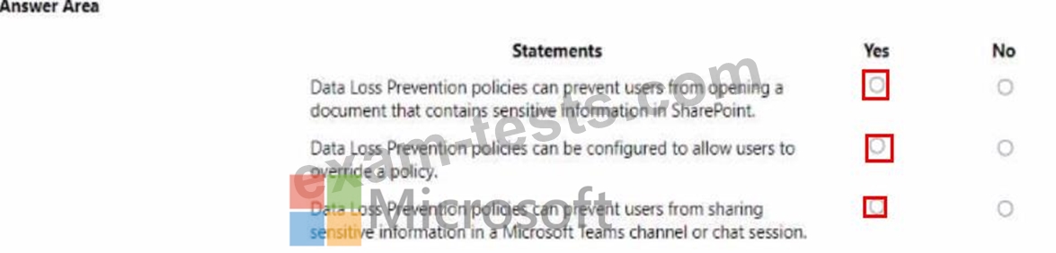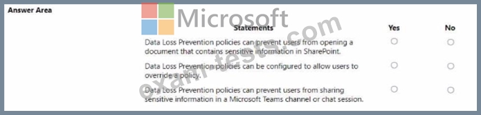 Instructions: For each of the following statements, select Yes if the statement is true. Otherwise, select No.