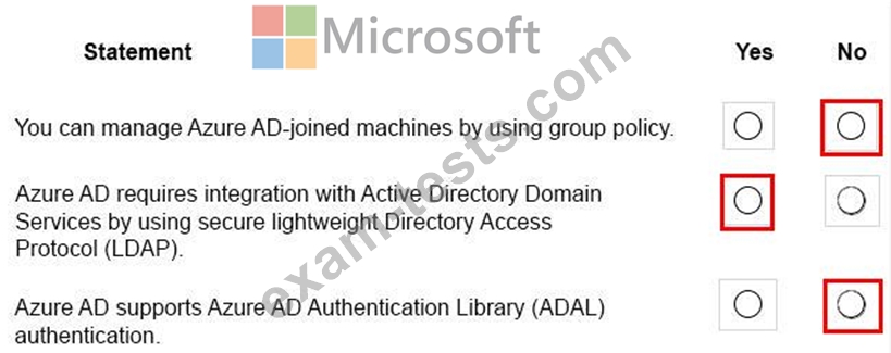 For each of the following statements, select Yes if the statement is true. Otherwise, select No.
