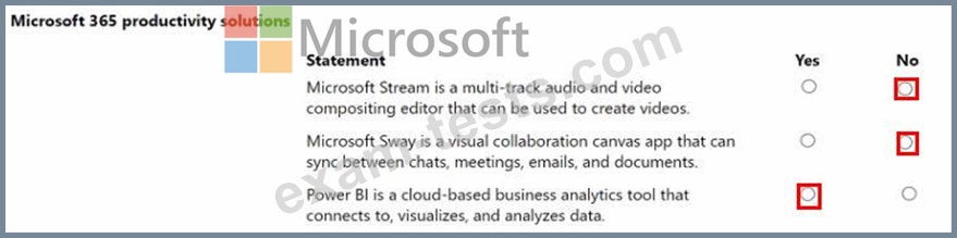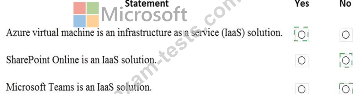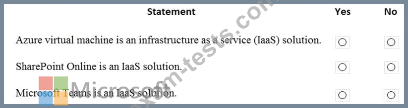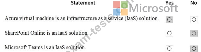 For each of the following statements, select Yes if the statement is true. Otherwise, select No.