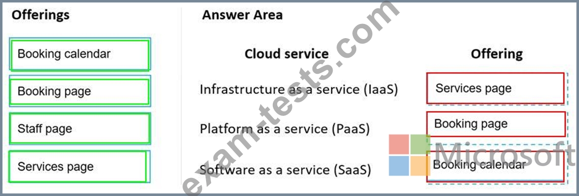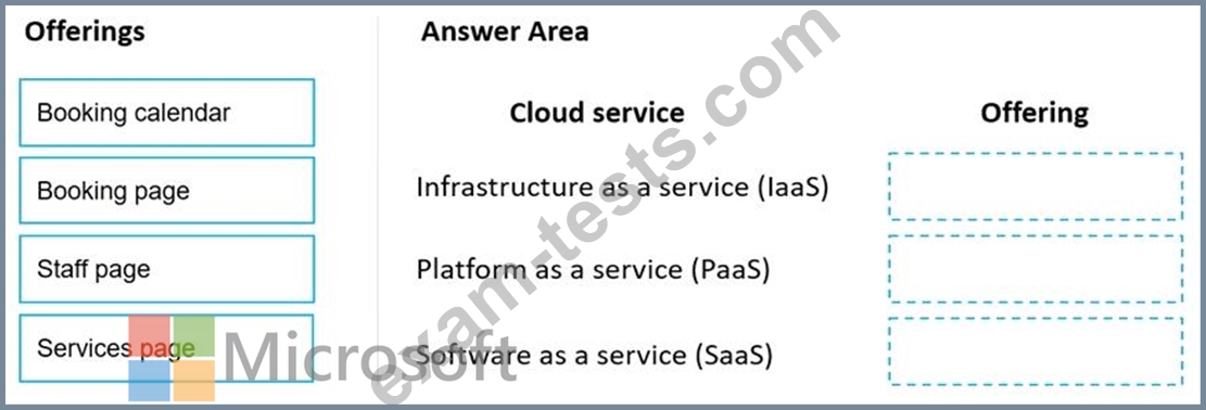 Instructions: To answer, drag the appropriate offering from the column on the left to the cloud service on the right. Each offering might be used once, more than once, or not at all.