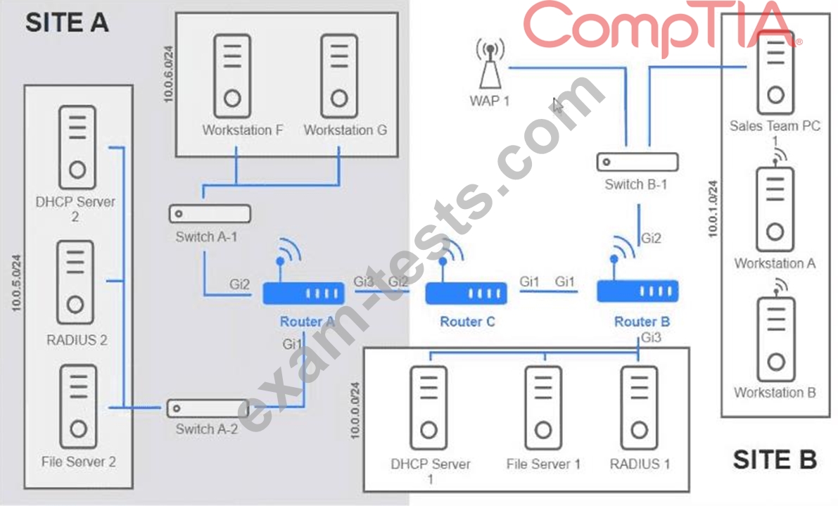 Users are unable to access files on their department share located on flle_server 2. The network administrator has been tasked with validating routing between networks hosting workstation A and file server 2.