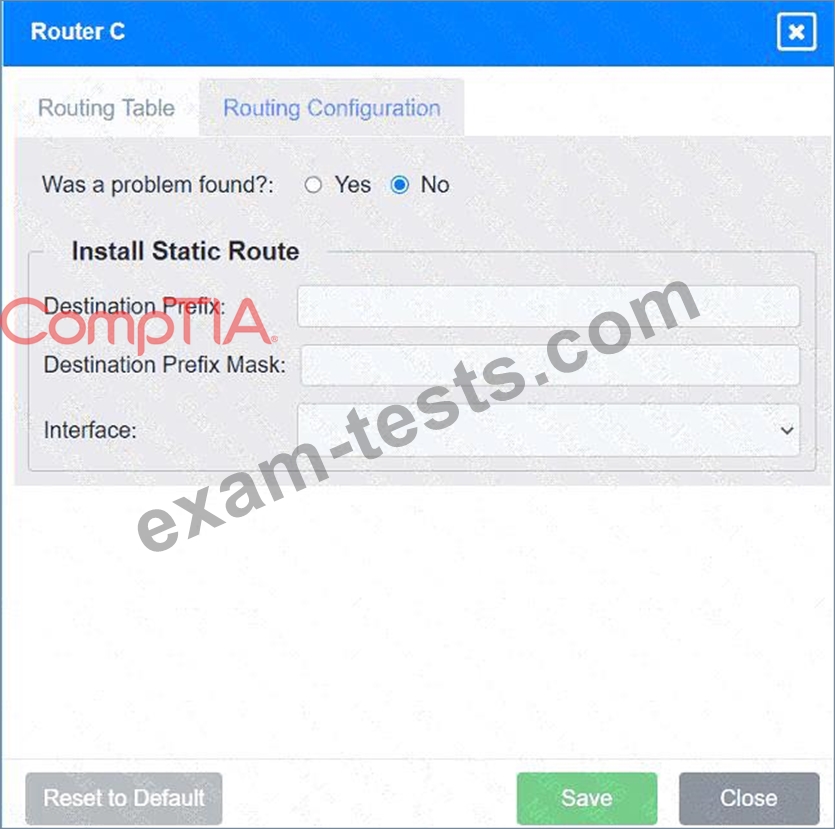 Ensure that each router has routes to the networks on which Workstation A and File Server 2 are located.