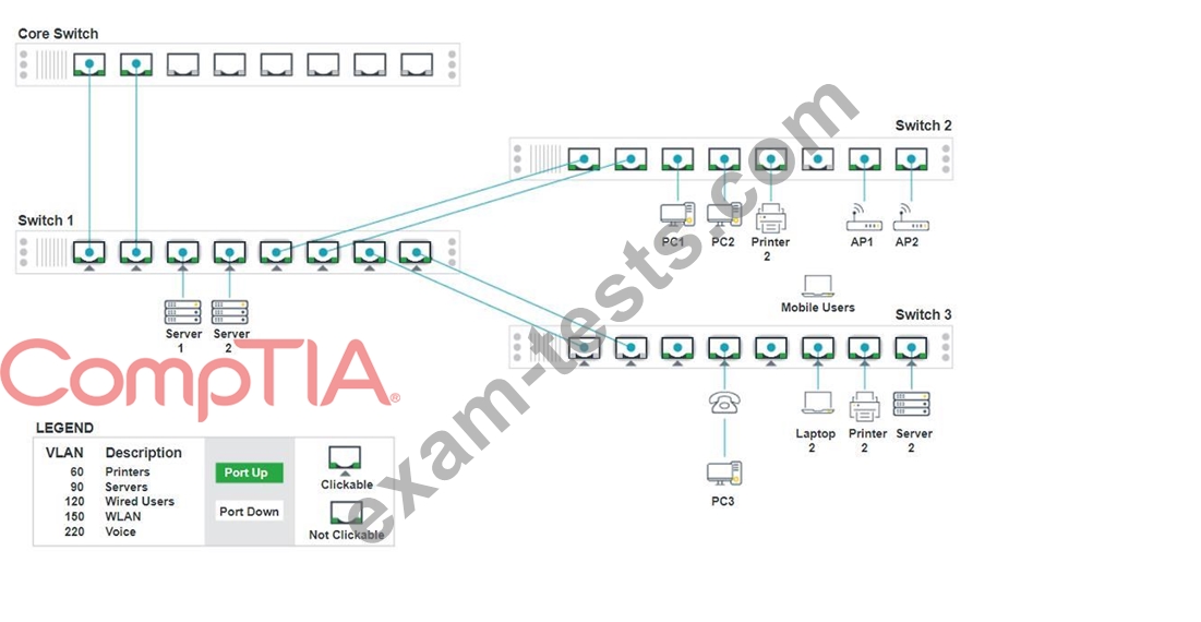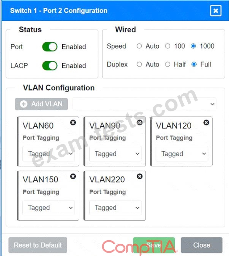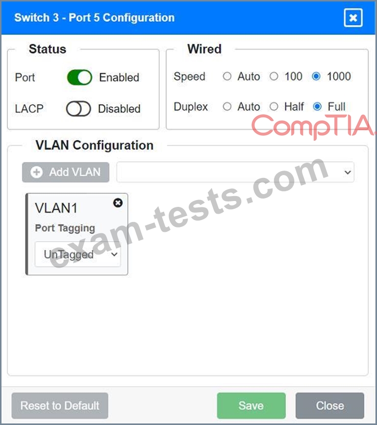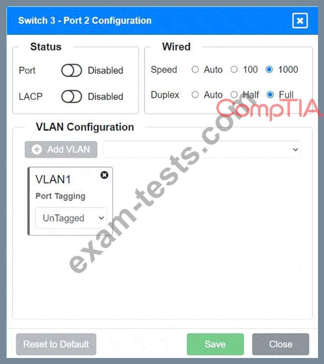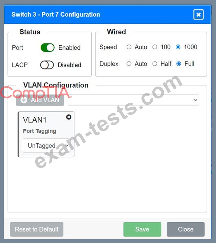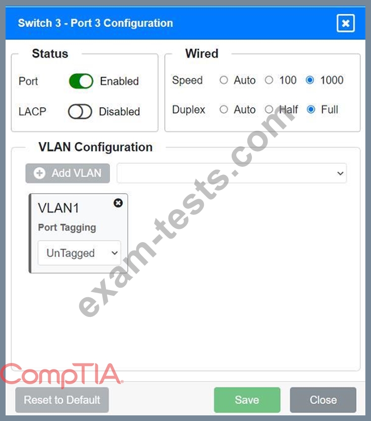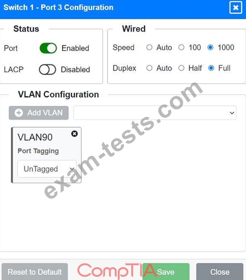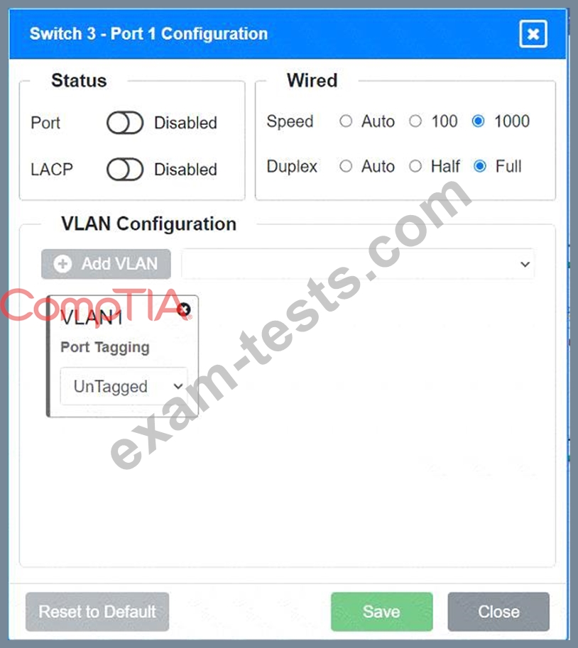 Click on the appropriate port(s) on Switch 1 and Switch 3 to verify or reconfigure the correct settings:
