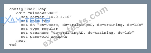 Based on the output, what FortiGate LDAP setting is configured incorrectly?