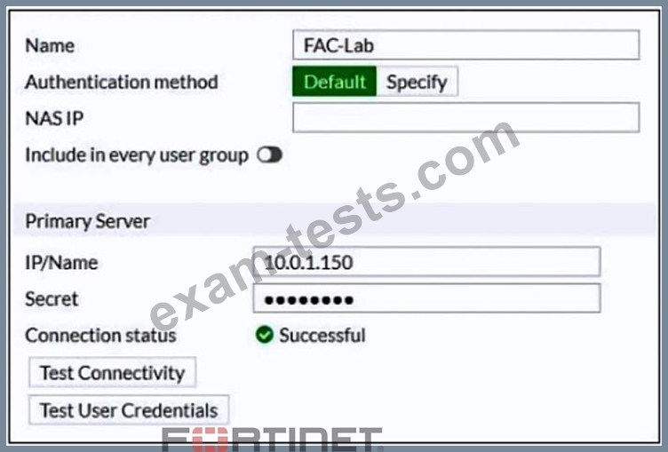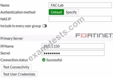 An administrator has configured a RADIUS server on FortiGate that points to FortiAuthenticator.