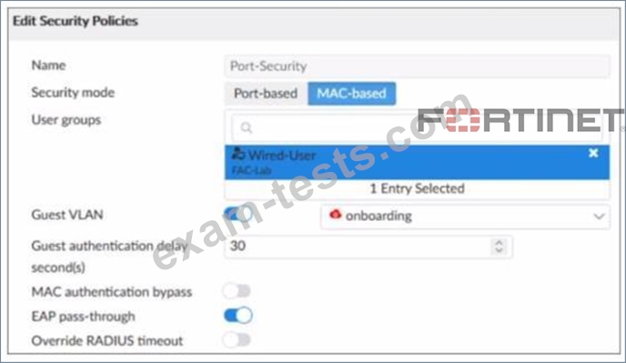 Examine the FortiSwitch security policy shown in the exhibit