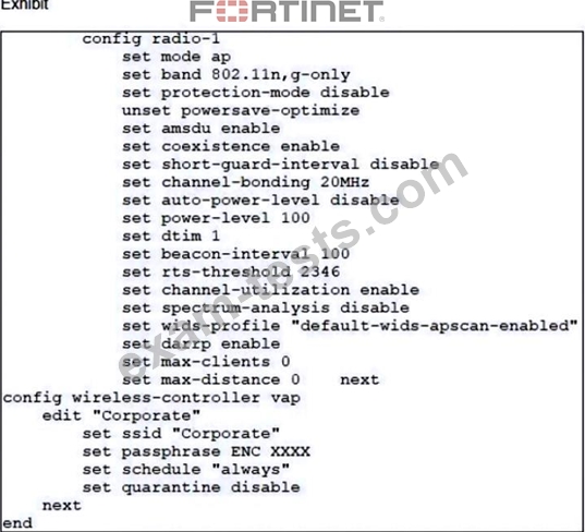 Users have been reporting issues with the speed of their wireless connection in a particular part of the wireless network The interface that is having issues is the 2 4 GHz interface that is currently configured on channel 6 The administrator of the wireless network has investigated and surveyed the local RF environment using the tools available at the AP and FortiGate Which configuration would improve the wireless connection?
