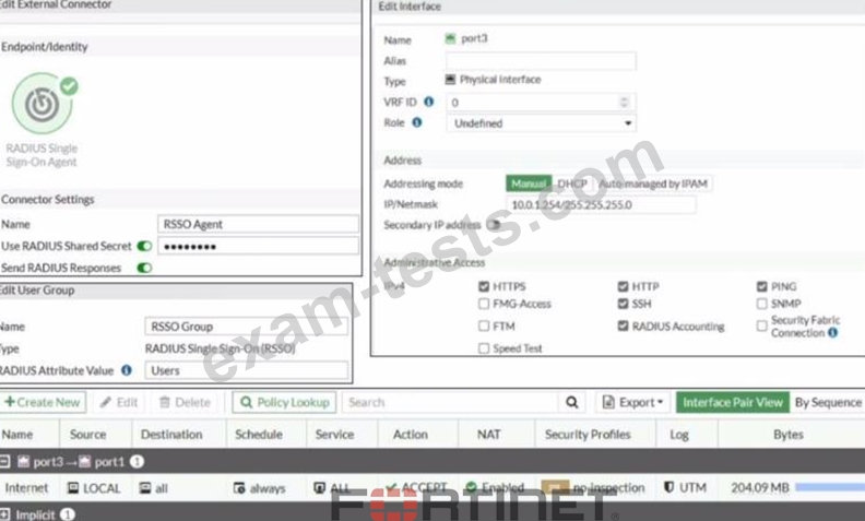 Examine the FortiGate RSSO configuration shown in the exhibit