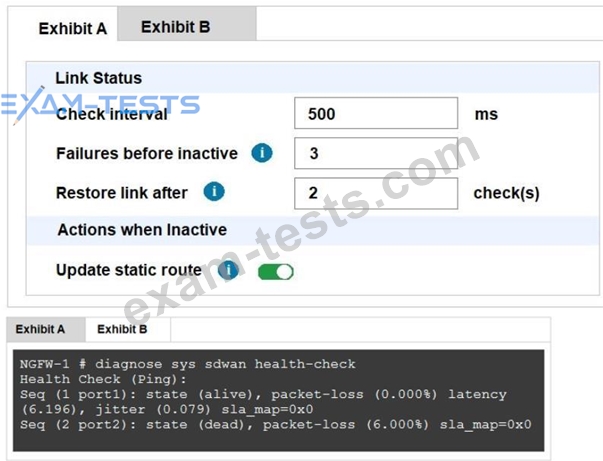 Exhibit A, which shows the SD-WAN performance SLA and exhibit B shows the health of the participating SD-WAN members.